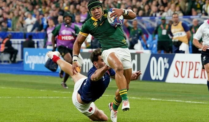 Cheslin Kolbe's journey to rugby stardom is a testament to determination and talent. Originating from Kraaifontein, South Africa, Cheslin's ascent began with humble roots, leading him to become a pivotal figure in the sport. With notable tenures at Western Province, the Stormers, and currently Suntory Sungoliath in Japan, Cheslin has solidified his status as one of rugby's most dynamic players. His remarkable agility, speed, and strategic prowess have earned him admiration and accolades worldwide, including pivotal roles in the Springboks' triumphs at the Rugby World Cup, where he clinched world champion titles.